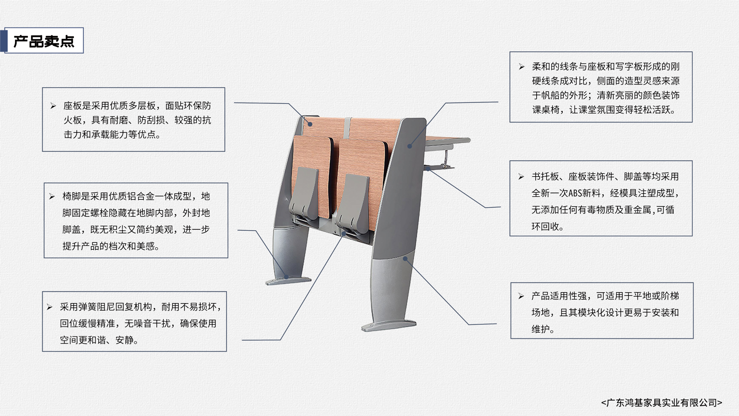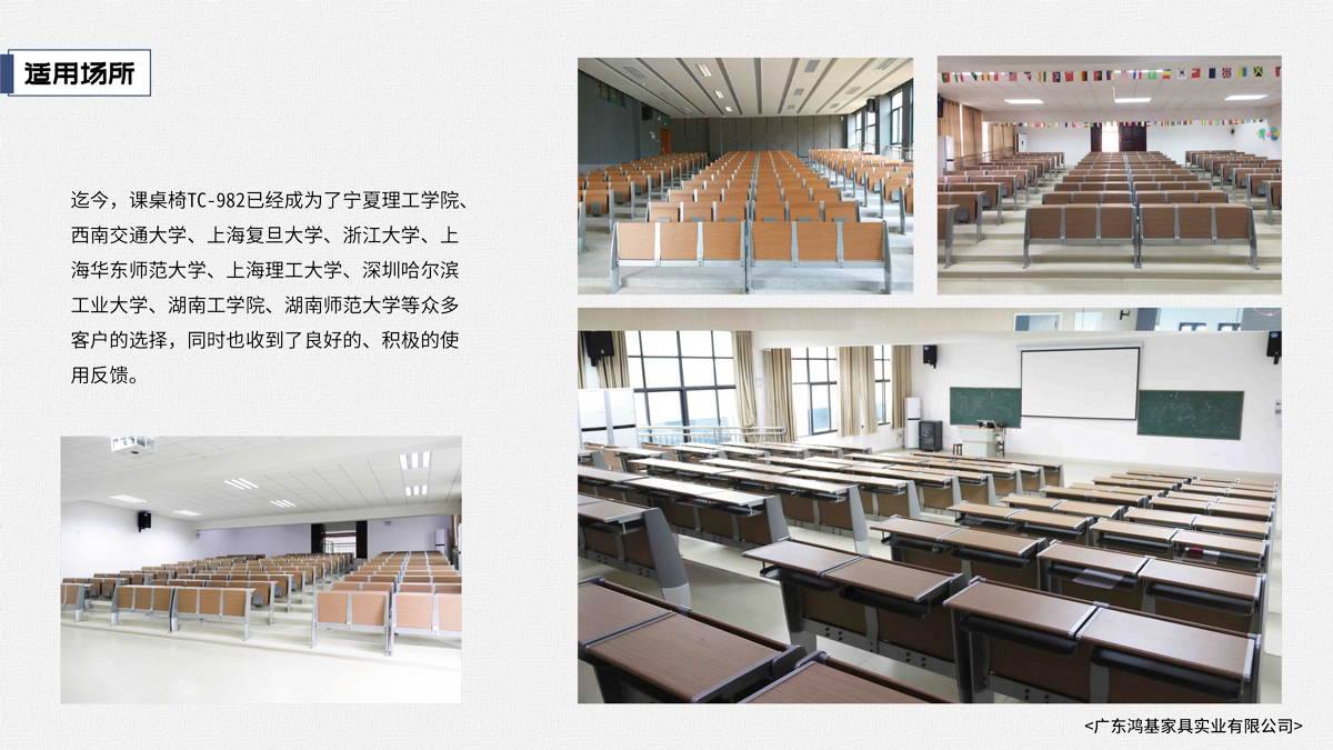 此課桌椅的設計采用柔和的線條打破傳統市場,柔和的線條與座板和寫字板形成的剛硬線條成對比,側面的造型靈感來源于帆船的外形;清新亮麗的顏色裝飾課桌椅,讓課堂氛圍變得輕松活躍,給人一種無區束卻又不散漫豎而有序的學習環境;舒適又堅實的感覺,使整個設計符合人體工程學原理。座阻尼慢回位功能,使學習環境更寧靜。可為學校、報告廳等最佳首選之一。 |
